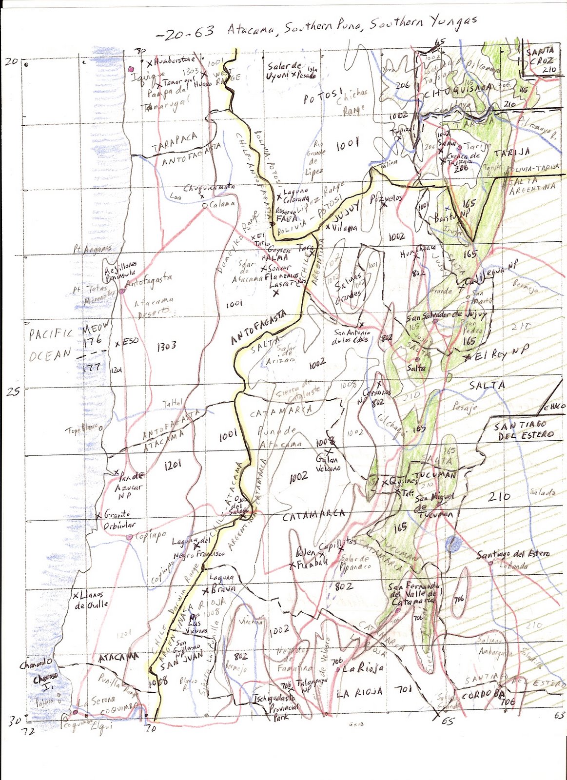 NT 1001, Central Andean Dry Puna. Found in Catamarca, Jujuy, and Salta provinces of Argentina; Potosi Department of Bolivia; and II Antofagasta, III Atacama, and I Tarapaca regions of Chile. High elevation deserts with saline lakes and volcanoes.