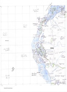This map area encompasses deserts and savannas of the Western Australia coastline. The northern and central areas are arid; however, occasional summer tropical storms can cause flooding as happened in December 2010 around Carnarvon. The area around Shark Bay received in excess of nine inches of rain from a tropical storm. In addition, the coastal areas from Shark Bay southward receive winter rains, which support a more savanna-like vegetation and spring wildflower displays. The southern portions of the map area, from Shark Bay southward, are dominated by eucalyptus trees in the flora, while the northern, more desertic areas, are dominated by acacia shrubs. This area was not always a desert. Until three million years ago, northwestern Australia was covered with rainforest. At this time, the Indonesian archipelago rose from the ocean floor, changing ocean currents and blocking warm water traveling south along the Australian coast. This led to the decline of precipitation in Australia, and was the death blow to rainforest vegetation (Perkins 2011).