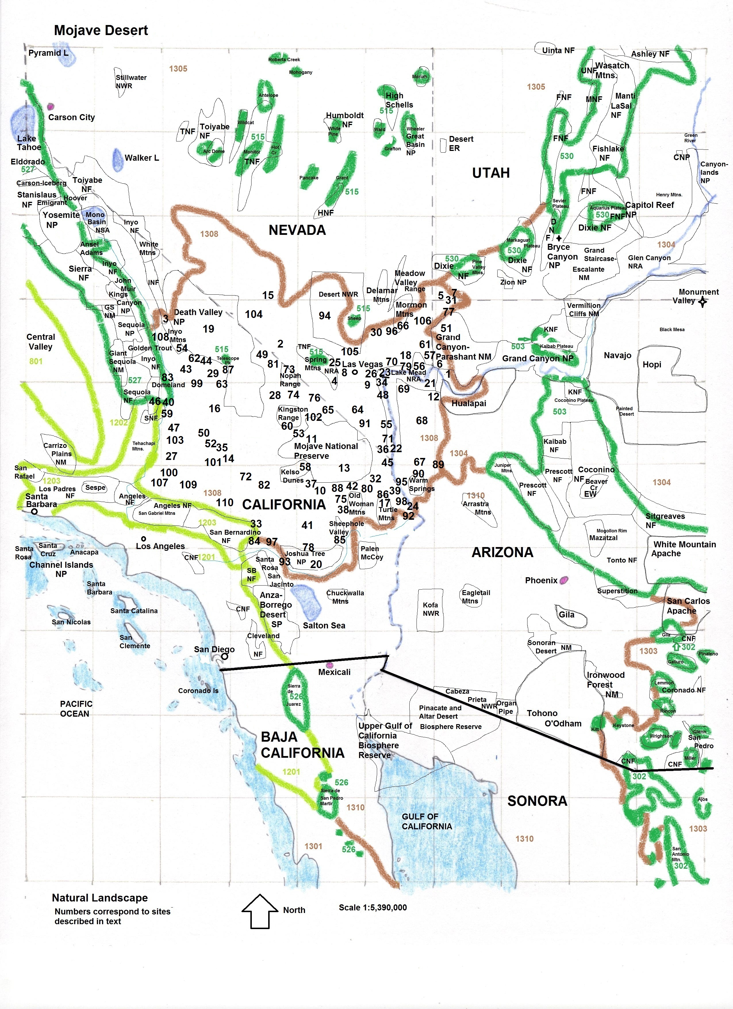 Cinder Cones, Mojave National Preserve,California (site 11). The NNL consists of 20 large cinder cones in the Cima Dome area with extensive lava flows. The cones are mostly in the area bordered by I-15, Cima Road, and Kelbacker Road. Ecoregion NA1308. Also see Mojave National Preserve (below).